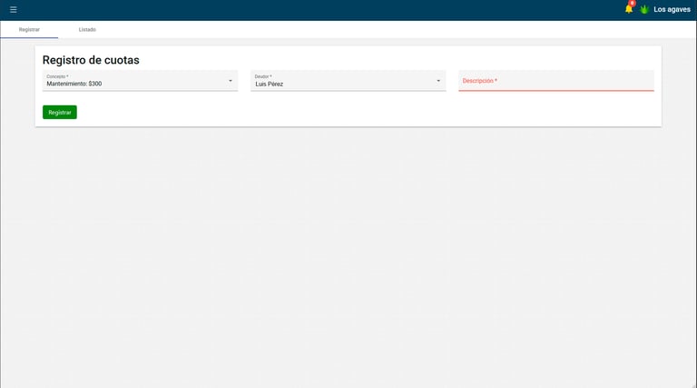 Registra los distintos tipos de cuotas que vas a registrar, mantenimientos, multas por dejar el portón abierto, por ensuciar áreas verdes, por dejar basura, por averiar algún espacio público, etc.