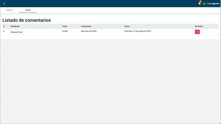 Un espacio para que los administrativos o mesa directiva pueda leer los comentarios que envían los residentes y puedan atender el tema personalmente.