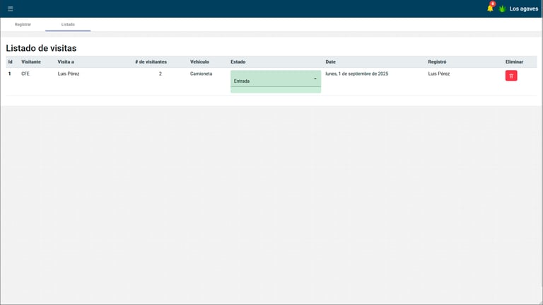 Visualiza el detalle de hora de entrada de cada visita, cambia el estado de los visitantes (entrada o salida), y ten el registro de todo externo que ingresa al fraccionamiento.