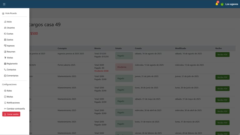 Registra multas, mensualidades pendientes para uno o todos los vecinos, o cualquier monto que se deba cubrir por algún residente.