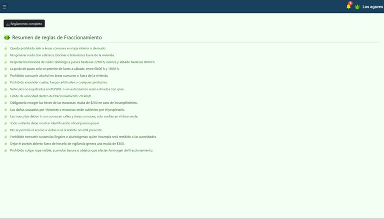 Agrega un resumen de tu reglamento además de subir una versión completa en PDF para que todos puedan descargarla en cualquier momento.